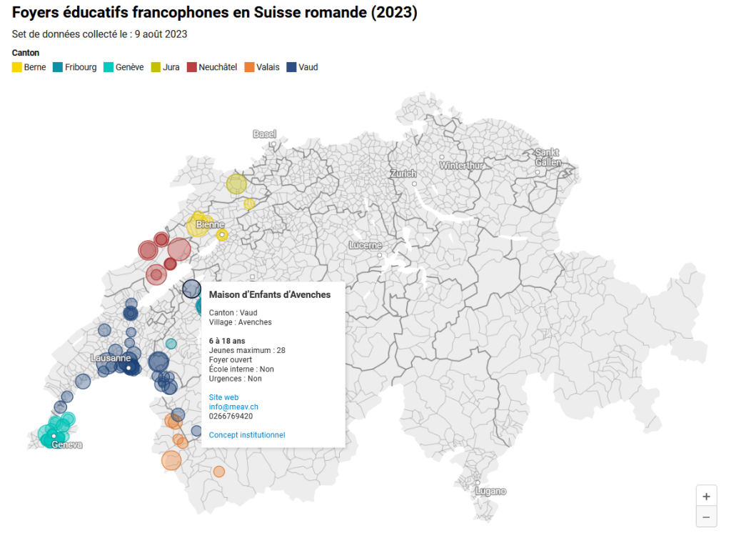 Carte interactive des foyers éducatifs en Suisse romande (en activité)